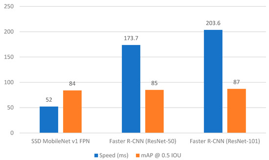 In the Faster R-CNN case, Hyperopt was incorporated to automatically search for the optimal selection of hyperparameters [27], for example, learning rate and momentum coefficients, improving the model effectiveness, which proved to increase the performance of each individual model. The Hyperopt function selected a learning rate of 0.0003 and momentum of 0.9 with a batch size of 8 in the Faster R-CNN case. In the case of SSD MobileNet, the learning is adjusted to 0.004 and momentum to 0.9 with a batch size of 24.