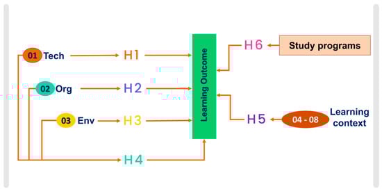In order to identify the contribution of learning elements related to all components of the TOE framework on learning outcomes and which of the three components (TECH, ORG, ENV) more strongly influence learning outcomes, we formulate the fourth research hypothesis: