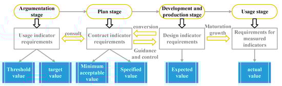 In different engineering phases, the requirements for the same parameter indicator often vary. During the validation phase, analysts review system requirements and propose usage indicators, which can be divided into threshold values and target values. The threshold values reflect the minimum acceptable usage requirements, while the target values represent the desired expectations for usage indicators. In the design phase, the research and production department conduct an implementable analysis based on these usage indicators. Feedback is then provided to the validation department, leading to modifications and adjustments. Contract indicators are subsequently discussed and agreed upon in consultation with the design department. These contract indicators consist of minimum acceptable values and specified values, where the former represents the minimum contractual requirements, and the latter indicates the desired performance expectations.