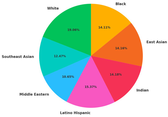 The BUPT-Balancedface dataset used in this study was provided by the Beijing University of Posts and Telecommunications. The dataset is available for research purposes under specific licensing conditions. For more details, see http://www.whdeng.cn/RFW, accessed on 30 July 2024. The FairFace dataset used in this study is licensed under the MIT License. The dataset is freely available for research and commercial use. For more information, see https://github.com/joojs/fairface, accessed on 30 July 2024. Since the data used in this study comprise a public open dataset, they can be used by contacting the data holder.