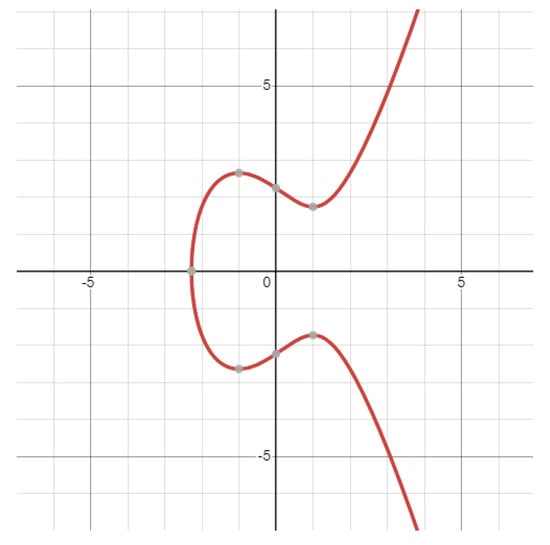 The secp256k1 elliptic curve has gained significant prominence, particularly in the realm of cryptocurrencies such as Bitcoin [31]. The equation of this curve is . One of the notable features of secp256k1 is its adoption as the underlying elliptic curve for the generation of public–private key pairs in Bitcoin’s cryptographic scheme. Bitcoin’s security relies heavily on the cryptographic properties of secp256k1, ensuring the integrity and confidentiality of transactions within the network.