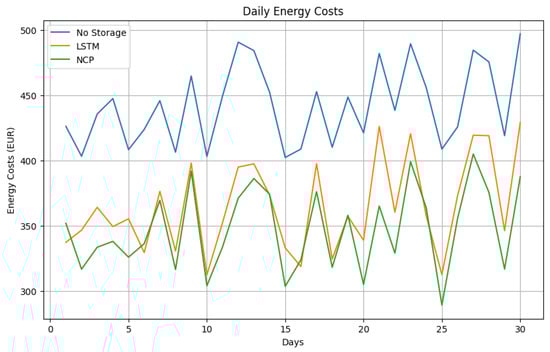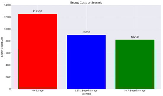 These statistical tests confirm that the implementation of advanced predictive models (LSTM and NCP) for managing the energy storage system leads to significant cost savings compared to the scenario without storage.