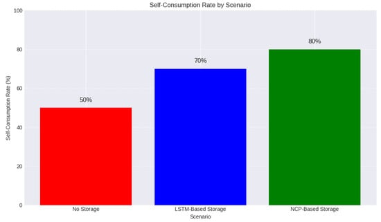 The findings of this study underscore the significant advantages of integrating advanced predictive models with energy storage systems. The primary metrics for evaluation—energy costs and self-consumption rates—both show substantial improvement with the introduction of the storage system, particularly when managed using NCP-based policies.