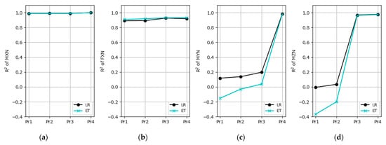Model accuracy: R2 of (a) MXN; (b) FXN; (c) MYN; (d) MZN.