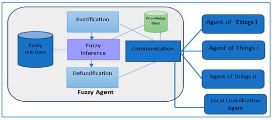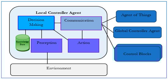 In this section, we present an overview of the MAS paradigm [35,36,37]. MAS is an interdisciplinary field that relies on numerous areas such as control theory, artificial intelligence, game theory, and distributed systems. It is a system made up of multiple interacting agents that work together to accomplish a common goal. An agent is a software or physical autonomous entity that is proactive, reactive, situated in an environment, and is capable of making decisions to fulfill its goals by interacting with its environment. Each agent has its own properties, such as autonomy, reactivity, proactivity, rationality, mobility, learning, and adaptability, that impact its behavior. An agent’s behavior is defined by a set of roles it can perform (e.g., learner, author, reviewer, administrator). MAS interactions are supported by different forms of communications. It aims at ensuring system coherency and contributes significantly to the achievement of the system and the agents’ goals. MAS communication is well-structured and utilizes specific agents’ communication language, such as KQML [35] and FIPA-ACL [36]. It is based on well-defined protocols, such as Contract Net Protocol [38]. Interactions include cooperation, collaboration, and negotiation. Agents are designed with specific architecture, which are classified into two main types: reactive and cognitive. Reactive agents are simple and react in real time to environment changes, whereas cognitive agents are intelligent and can plan ahead to accomplish their goals. A hybrid architecture can be utilized to take advantage of both. MAS has been widely applied in various real-world applications, such as multi-robot systems, multiple satellite systems, autonomous underwater vehicle queues, air vehicle fleets, and so on [39]. Their applications cover several fields, like healthcare, energy management, transportation, and agriculture. With the growth of sensor network, distributed computing, and network communication.
