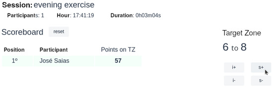 One user also mentioned that the gamification aspect, with the introduction of a scoreboard (shown on the left side of Figure 5) related to time spent within the target training zone, serves as a positive stimulus for exercise participants.