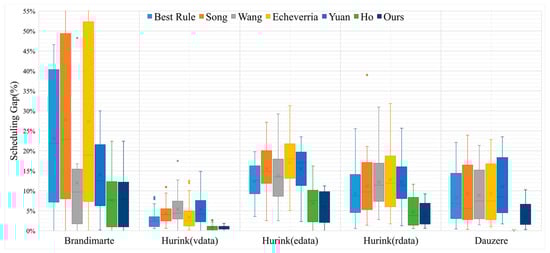- Sels, V.; Gheysen, N.; Vanhoucke, M. A Comparison of Priority Rules for the Job Shop Scheduling Problem under Different Flow Time- and Tardiness-Related Objective Functions. Int. J. Prod. Res. 2012, 50, 4255–4270. [Google Scholar] [CrossRef]