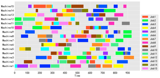 In the context of globalization, the Fourth Industrial Revolution (4IR) is promoting the digitization, networking, and intelligence of production processes by deeply integrating advanced information technology, intelligent equipment, and automation systems [1,2] and thus makes the intelligent and flexible production systems crucial means to enhance corporate competitiveness. Among these, the flexible job shop scheduling problem (FJSSP) is one of the core problems in manufacturing execution management and process control management, and it is also a classic NP-hard problem in the field of combinatorial optimization [3], playing a key role in intelligent manufacturing. The FJSSP refers to optimizing the execution sequence of various jobs across multiple machines within a workshop to improve production efficiency and resource utilization; its main object is to efficiently arrange each job’s operations on different machines to minimize total production time, delays, or costs. Therefore, research on the FJSSP holds significant theoretical importance and broad application prospects [4]. With the introduction of advanced technologies, such as the Internet of Things (IoT) [5], big data analytics [6], and artificial intelligence algorithms [7], the study of FJSSP can help to achieve dynamic adjustments in scheduling schemes, improve system response speed and adaptability, solve optimal scheduling schemes in complex and changes production environments efficiently, and further enhance the flexibility and efficiency of production systems.