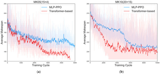 Over the past few decades, a large number of traditional methods, such as exact optimization methods, heuristic methods, and metaheuristic methods, have been proposed to solve the FJSSP. Exact methods [8,9,10,11] ensure finding the global optimal solution and can provide proof of the solution’s optimality. However, the time required to obtain the optimal solution for NP-hard problems using such methods grows exponentially with the problem size, making it infeasible to solve large-scale scheduling problems within a reasonable time frame. Heuristic methods [12,13,14] have advantages, such as lower time complexity and simplicity of implementation, making them suitable for various practical scenarios and widely used in dynamic real-time scheduling systems. However, these methods typically do not guarantee finding a local optimal solution and are highly dependent on the structure and characteristics of specific problems and require customized design and adjustments tailored to particular issues. Metaheuristic methods [15,16,17,18] can balance solution quality and computational effort, allowing them to handle larger and more complex optimization problems. Nevertheless, the metaheuristic methods typically lack adaptability, rely on domain knowledge, and require manual parameter tuning and operator design, posing limitations in dynamically changing environments and high-dimensional state spaces.