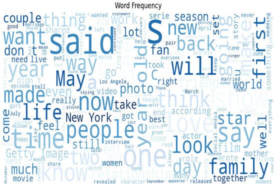 Figure 5 and Figure 6 present a visual analysis of the Gossipcop dataset. To explore the features of the three datasets used in this study, we created word clouds that visually display the key terms and phrases within the datasets. These keywords helped in understanding the themes or topics covered in the datasets, revealing the language style of the news texts and providing insights into the textual characteristics of fake news. By examining the high-frequency words, we observed that the three datasets predominantly contain vocabulary related to life, time, and tasks. This suggests that the texts in these datasets are oriented towards descriptions of individuals and daily life.