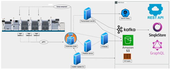This section explores the detailed architecture and strategic optimizations that enhance the performance and reliability of the defect detection solution. As demonstrated in Figure 10, the architecture handles the challenges posed by limited training data and the nuanced nature of defects and corrosion in electronic components during assembly. The system utilizes Kubernetes to orchestrate services across multiple servers at client sites, ensuring robustness and scalability. Machine learning models, stored securely in the cloud and encrypted in memory, are accessible on-demand. An external monitoring system tracks changes in remote storage, ensuring timely updates and deployment of the latest models.