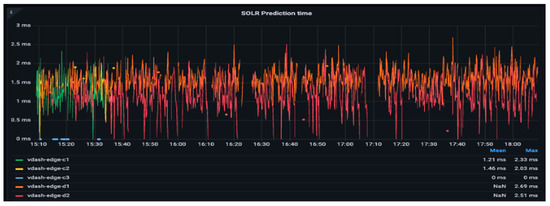 (Top) Processing time of the defects detection algorithm, (Bottom) processing time of the corrosion detection algorithm. Both running in parallel on the same images [13].