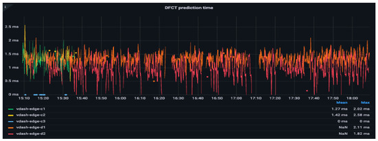 The performance evaluation of the defect and corrosion detection algorithms was conducted with 20 production machines operating simultaneously under typical manufacturing conditions (see Figure 11) [13]. The aim was to assess the algorithms’ processing speeds during high-volume operations. The results indicated that the average processing time for both defect and corrosion detection algorithms was around 1.5 ms for each component, managing around 20 components per second. This measurement reflects the duration directly associated with the detection algorithms, excluding any preprocessing or network delays. These findings highlight the algorithms’ capability to efficiently and effectively detect defects and corrosion in real time. Additionally, it was noted that the processing performance is influenced by the size of the components being analyzed.