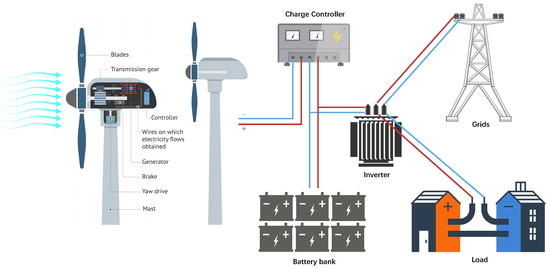As global warming intensifies and energy crises escalate, the need to seek clean and sustainable energy solutions has become an international consensus. Wind power generation, as a green energy technology, is becoming key to the global energy transition due to its renewable nature and low carbon emissions [1]. Figure 1 provides a detailed depiction of the workflow of a modern wind turbine, from the capture of wind energy to the output of electricity. The left side of the image illustrates the main components of a wind turbine. Wind is captured by the turbine blades and converted into mechanical energy through transmission gears, which drive the generator to produce electricity. The right side of the image then describes the further processing and distribution of electricity. Power is first transmitted to a charge controller, then flows to a battery bank for storage or directly to an inverter, which supplies power to the grid or directly to the load. According to data released by the Global Wind Energy Council (GWEC) [2], global cumulative installed wind power capacity grew from 433 GW in 2015 to 906 GW in 2022, with an annual compound growth rate of 11.12%. Accurate wind power prediction is crucial for realizing precise scheduling and efficient power supply, thus making wind power prediction technology essential. However, the variability and intermittency of wind power present significant challenges to the planning, operation, and control of power systems [3].