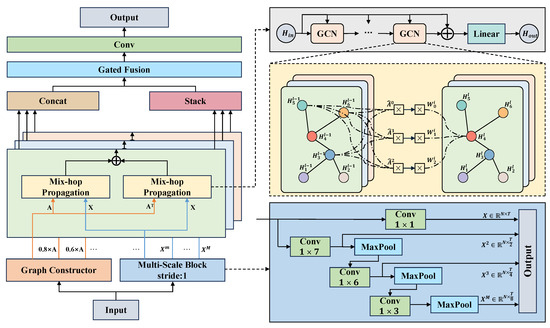Based on the Dynamic Graph Learning strategy, we have proposed MST-GCN to generate and process multi-scale adjacency matrices. Figure 4 illustrates the overall framework of the network.