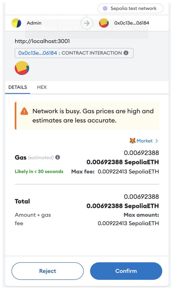 By integrating the smart contract with the MetaMask wallet and deploying it on the Ethereum Sepolia test chain, users can seamlessly interact with the grain supply chain tracking system, mint new grain lot NFTs, and contribute to the development and testing of decentralized applications for enhancing transparency and traceability in grain distribution. Figure 9 depicts the gas fees used for our implementation.