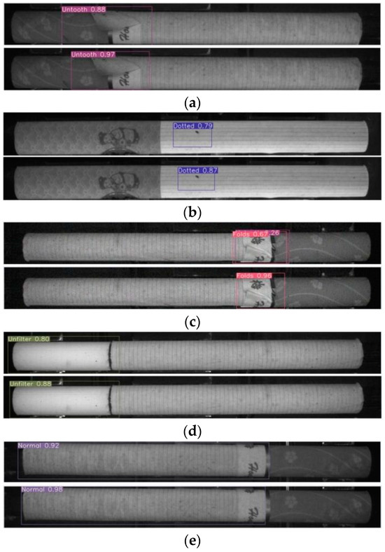 4.9. Comparison of Cigarette Appearance Defect Detection Results