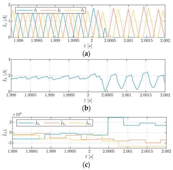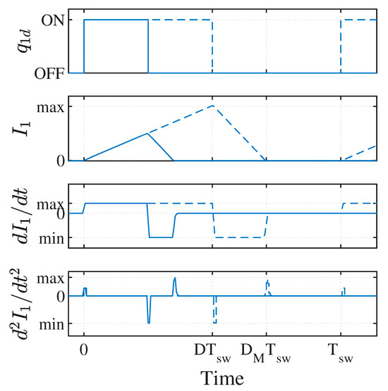 - When D is either equal to 1/3 or 2/3, d2IL/dt2 is negative for the ON → OFF transition; under healthy state, d2IL/dt2 is either null or positive; these conditions are complementary to those observed for the boost mode.