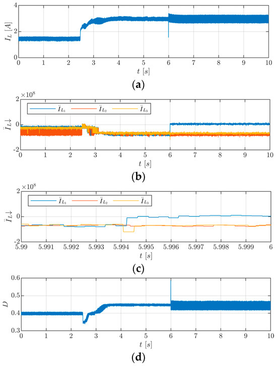 | [6] | Interleaved boost converter | Input current derivative sign | 1 kHz | 25 μs, 50 μs | 2 Tsw (5) (2 ms) | 40 |