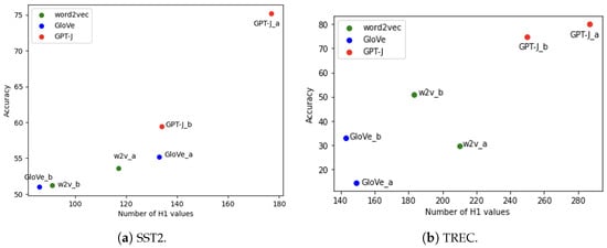Two widely used benchmark datasets, SST2 [] and TREC [], are used. SST2 consists of movie reviews with binary sentiment labels—positive or negative. The TREC dataset contains questions that are classified into six categories. One classification model is trained on the original database to obtain the baseline results. Training data are selected as follows: