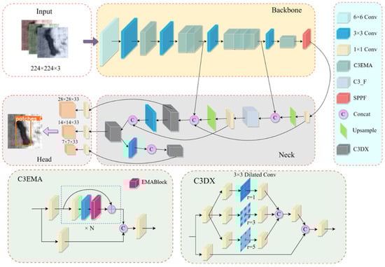 More rich feature information is required considering the primary role of the Neck is feature integration. For this reason, we improve the C3_F module in the Neck by introducing dilated convolution to design a new structure, C3DX, as shown in Figure 2. Dilated convolution can enlarge the receptive field of each point on the feature map without extra parameters, learning more multi-scale contextual information [].