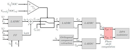The separated alpha and beta components of the inductor current, as illustrated in Figure 14, are utilized to generate the orthogonal current signal by applying a 90° phase shift. Subsequently, a Park transform is executed to produce the active and reactive components of the inductor current, enabling the decoupled and independent control of the DAB active and reactive power.