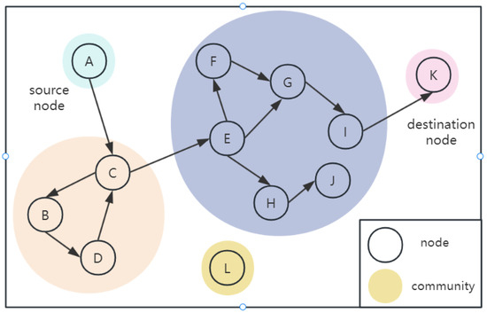 The rapid growth of modern internet technologies is fundamentally changing social structures and people’s lifestyles. The swift progress in wireless communication [1], networking, and sensor technologies has led to significant advancements [2,3], and ubiquitous network architectures are gradually forming. Countless intelligent mobile devices are swiftly connecting to the network at an unprecedented pace, with their proportion steadily increasing, enabling the extensive adoption of social networking applications. In the “Internet Plus” era, where “everyone is connected”, the number of internet users in China is continuously surging, and the internet penetration rate is escalating. Statistics indicate that as of June 2023, the number of internet users in China had escalated to 1.079 billion, achieving an internet penetration rate of 76.4%. Among these, smartphones have become the primary devices for internet access. However, the substantial network connectivity demands of numerous intelligent mobile devices have led to excessive communication loads on traditional cellular networks, severely impacting the quality of service for applications. The rise of this trend has led to the development of socially aware networks (SANs) [4]. SANs is introduced by integrating delay tolerant networking (DTN) [5], information physical systems, and social network analysis theory [6,7]. SANs is proposed. As a novel network paradigm, SANs is capable of perceiving and analyzing the contextual information from network nodes [8,9], thereby enabling the fusion of human society with network physical systems through context-aware computing. This allows mobile networks to offer more intelligent and high-quality services to humanity [10].