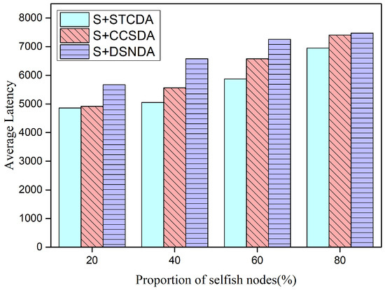 The average latency of schemes with different percentages of selfish nodes.