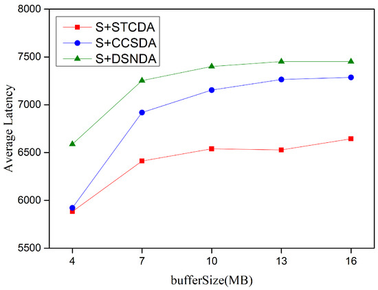 The average latency of schemes with different buffer sizes.