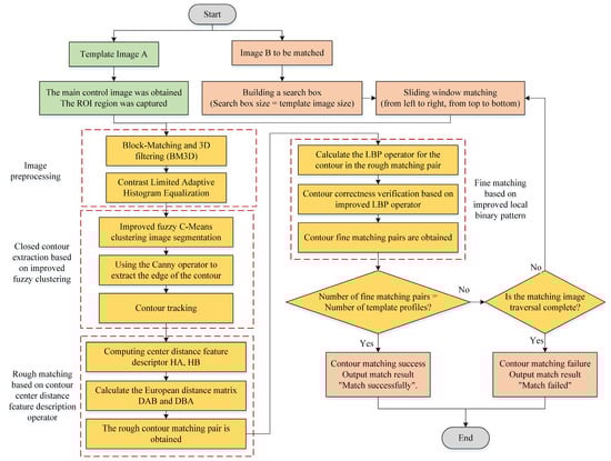 where dmin is the nearest neighbor distance and dn-min is the second nearest neighbor distance. If NNDR meets the threshold requirements, the nearest neighbor points are correctly matched contour pairs. Otherwise, the nearest neighbor points are considered to represent mismatched contour pairs.