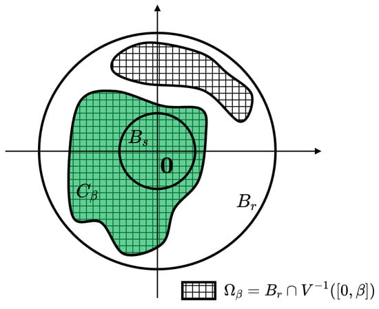 Then, since is Lipschitz in D, is also connected and . This implies that at least a portion of is also a subset of . It can further be concluded that . If this is not true, then overlaps with . There is a point such that . Then, the Lyapunov-alike function