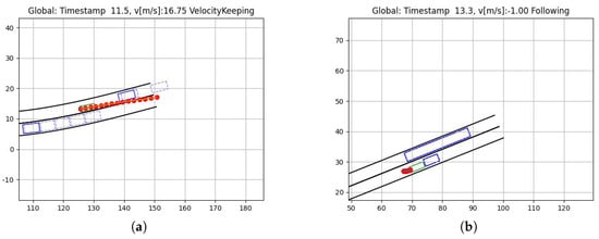 Local planning in a moving traffic scene (The animation gif is available at https://bit.ly/3L4QSHB, accessed on 22 September 2024).