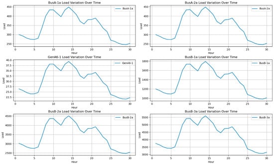 The power system studied in this paper uses the same 240-h period as the wind power for the experimental scenario. The load fluctuation curve is shown in Figure 5. During the selected period, the grid load peaks around 10:00 AM and 3:00 PM and reaches its lowest point in the early morning. This pattern reflects a typical daily variation in power consumption.