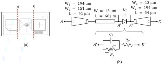 - Luo, H.; Hu, W.; Guo, Y. Parameter extraction and modeling of schottky diodes: An extension of the resonance based inductance extraction method. In Proceedings of the 2021 IEEE MTT-S International Wireless Symposium (IWS), Nanjing, China, 23–26 May 2021; pp. 1–3. [Google Scholar]