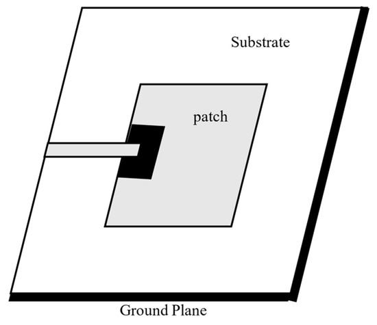 The microstrip patch antenna is a one-layer layout that is depicted in Figure 1 and is typically composed of four parts: the patch, substrate, ground plane, and feeding section. Any shape is possible for the radiating patch, including rectangular, square, circular, triangular, elliptical, and thin strip (dipole). The most popular geometries are rectangular, square, circular, and dipole (strip) because they are simple to analyze and fabricate and have desirable radiation properties, especially reduced cross-polarization radiation. Microstrip dipoles have an inherently large bandwidth and require little space, making them perfect for arrays [10,11]. Both circular and linear polarizations can be produced using single-element antennas and microstrip antenna arrays. Utilizing an array of microstrip components with one or multiple feeds can help increase directivity and provide scanning capabilities.