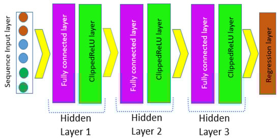 Previously, a recently developed AI-based model AIDETECT fell short of performance expectations. To address these shortcomings, we developed a tailored FFNN model AIDETECT2. Drawing inspiration from the AIDETECT, our customized lightweight FFNN aims to reduce complexity while enhancing overall performance. AIDETECT has utilized patter-net neural network, which has three hidden layers consisting of 64, 32 and 16 neurons. The customized FFNN used in AIDETECT2 is employed for a sequence of regression tasks. Initially, the feature data is transformed into a sequential format and passed to a sequence input layer sized according to the number of rows in the feature data. This input then flows through three hidden layers. Each hidden layer includes a clipped ReLU layer for introducing non-linearity, aiding the neural network in pattern recognition. In the fully connected layers, each neuron connects to the previous layer, incorporating weights and biases through an activation function [23]. Following these three hidden layers, the data enters the output layer for regression tasks. Training employs the Adam optimizer with an initial learning rate set to 0.001 and a mini-batch size of 10 [24]. The following Figure 5 shows the hidden layer architecture of the AIDETECT-2 network model.