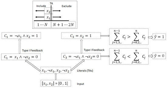 - Sharma, J.; Yadav, R.; Granmo, O.C.; Jiao, L. Drop clause: Enhancing performance, robustness and pattern recognition capabilities of the Tsetlin machine. In Proceedings of the AAAI Conference on Artificial Intelligence, Washington, DC, USA, 7–14 February 2023; Volume 37, pp. 13547–13555. [Google Scholar]