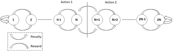 A two-action Tsetlin Automaton with 2N states.