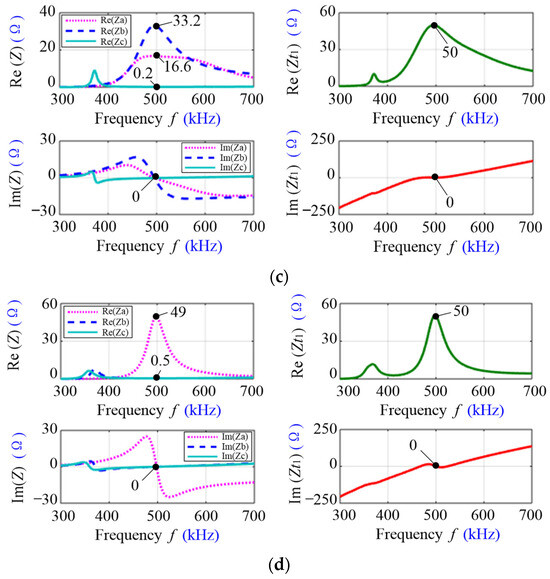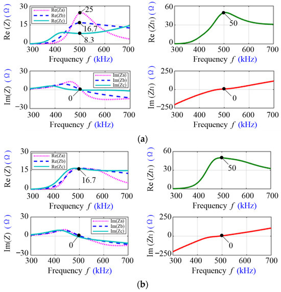 Based on (11), it can be seen that when (10) is satisfied, the mapping impedances , and only have the real parts. If the mutual inductances , and and the load resistances , and are given, the mapping impedances are only determined by the parallel inductances , and in the CLC networks.