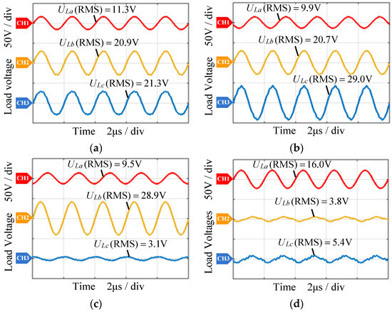 Measured load voltage waveforms in (a) scenario-1; (b) scenario-2; (c) scenario-3; (d) scenario-4.