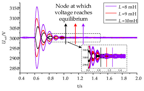 where Ts is the control period; Cwt is the capacitance at the output of the DCWT; and L is the energy-storage inductance of the HVBC. Once the percentage of voltage ripple is established, the value of inductor L can be determined. The following Figure 3 illustrates the effect of different inductance values on the HVBC control performance.