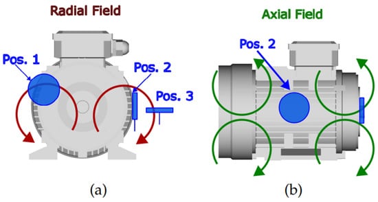 Magnetic stray flux components: (a) radial stray flux; (b) axial stray flux.