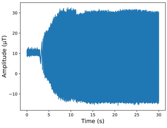 In this regard, Figure 7 corresponds to the radial magnetic flux signal mentioned above, which does not have any type of processing other than the segmentation of the 30 s with which we worked throughout the proposed methodology.