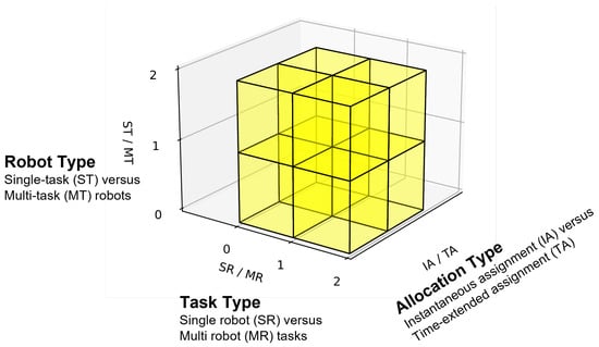Visual representation of the three axes of Gerkey and Mataric’s taxonomy.