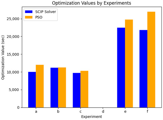 From the results in Table 3, it is evident that, while PSO can provide a feasible solution, the SCIP solver consistently finds the optimal solution. For example, in the a, e, and f experiment, the SCIP solver outperforms the PSO algorithm by a significant margin in terms of the objective values. This indicates that the SCIP solver is more effective in terms of achieving the globally optimal solution.