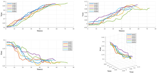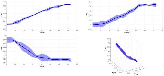 Since the durations of multiple presentations may be different, we regularized the time of the trajectory set at the same time, after which we used GMM–GMR for operational task feature extraction as well as regression fitting, as shown in