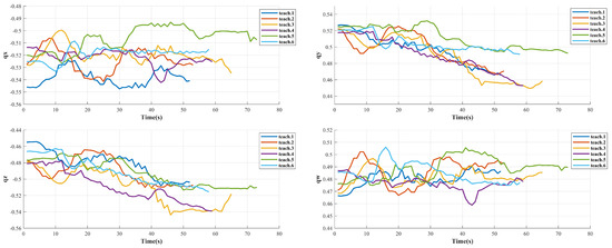 The figure shows that the collected trajectories are not smooth, which is due to the fact that underwater intervention tasks are different from land operation tasks. First, the ROV operator can only use the video feedback from a limited number of cameras on the ROV as a reference during teleoperation, while most of the applications on land have global information feedback. Second, due to the effects of current disturbances and dynamic positioning errors on the ROV’s position, the ROV operator needs to continuously adjust the position and orientation during teleoperation to mitigate the effects of the floating base, whereas most applications on land are based on a fixed base.
