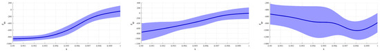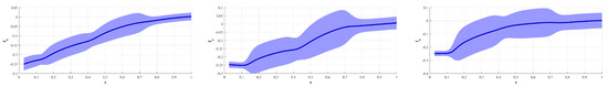 that we obtained using this method. The Gaussian component of the position trajectories obtained using the BCI rule is 4, and the Gaussian component of the orientation trajectories is 8. It can be observed that the width of the blue band representing the variance of the forcing term