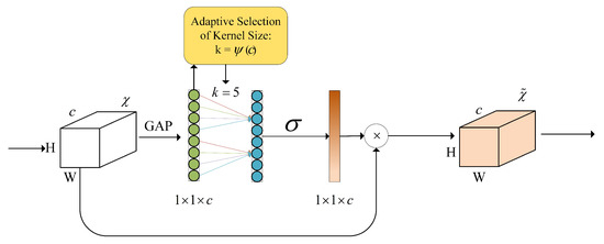 The formula for dynamically determining the size of the convolution kernel is provided in Equation (2). c denotes the number of channels, and the symbols γ and b are employed to adjust the ratio between the size of the convolutional kernel and the number of channels c. In the experiments, γ and b are set to 2 and 1, respectively.