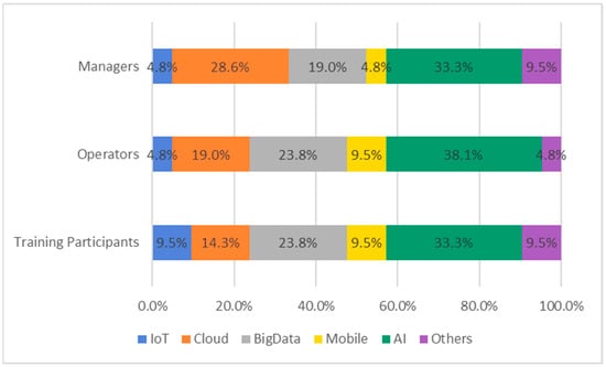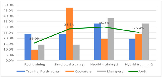 As another survey result, the preferred training type of each user is shown in Figure 9. In terms of training type, the participants preferred a mix of cyber training in real and simulated environments, but the operator who prepares and builds the training preferred a simulation that is relatively easy to build rather than a hybrid training with a complex structure. The managers chose the hybrid form of training based on its effectiveness.